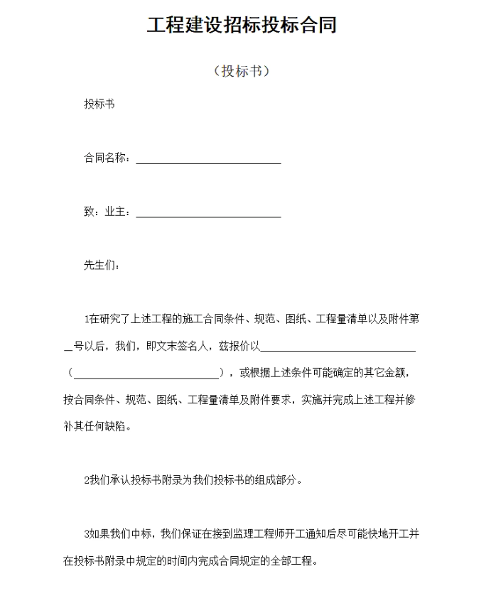 工程建设招标投标合同(投标书).doc.docx